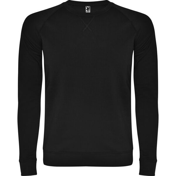 Sudadera de algodón de manga entallada estilo ranglán. Con cuello, puños y cintura, en canalé 1×1. Cuello redondo con adorno de costuras remalladas cruzadas y cubrecosturas de refuerzo en el interior del cuello.
