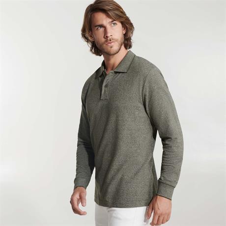 Polo vigoré de manga larga, con tapeta superpuesta de 2 botones a tono. Cuello y puños con detalle en color solido. Cubrecosturas reforzado en el interior del cuello. Aperturas laterales con cinta a contraste decorativa. El patronaje de la espalda es ligeramente mas largo que el delantero.