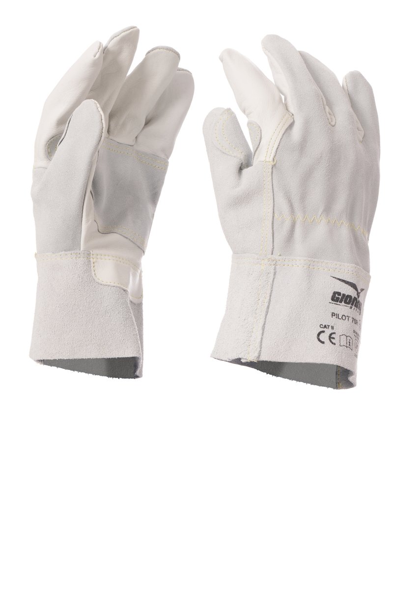 Guante con palma e índice en flor vacuno, parte dorsal en piel serraje vacuno y manguito en piel serraje de búfalo de 7 cm. Palma reforzada con serraje vacuno, protección en muñeca en flor bovina y puños elásticos. Costuras en hilo de para-aramida. Características: suaves, robustos, resistentes – Puntos fuertes: comodidad, destreza – Campos de uso: adecuados para manipulación de objetos pesados, afilados, rugosos, abrasivos y calientes, para la limpieza de equipos, para carpintería y carpintería metálica. Unidad mínima de venta: 1 docena (12 pares).