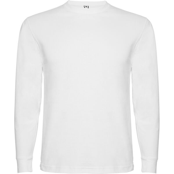 Camiseta de manga larga, costuras laterales, con cuello redondo de 4 capas y puños canalé 1×1. Cubre costuras reforzado en cuello y hombros.