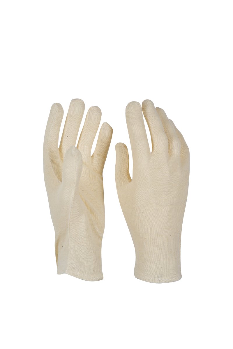Guantes interiores de algodón, color natural – Características: suave – Puntos fuertes: vestibilidad, sensibilidad – Campos de uso: manipulaciones genéricas en entornos secos. – Características: suave. Unidad mínima de venta: 1 docena (12 pares)